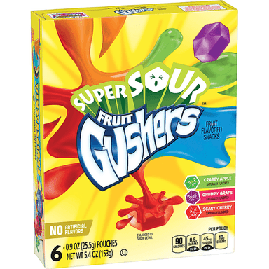 Super Sour Gushers are bursting with fun! Gushers have a juicy center that bursts open with delicious fruity liquid that's made with real fruit jui...