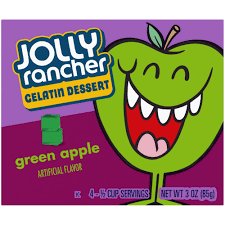 Inspired by Jolly Rancher Candy Flavours this green apple gelatine dessert is easy to make and serve.Makes 4 1/2 cup servings. Simply add water to ...