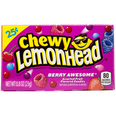 This serving size box contains a mix of the following flavoured chewy candy: Cherry Lemon • Wild Berry • Blue Raspberry • Strawberry • Red Raspberr...